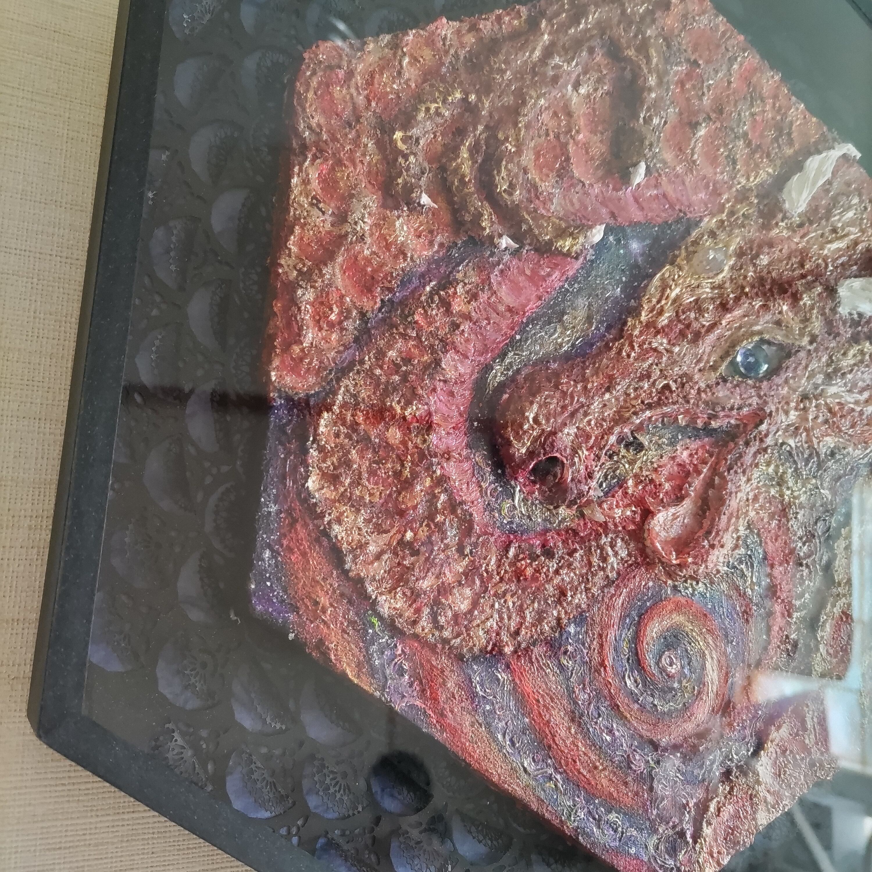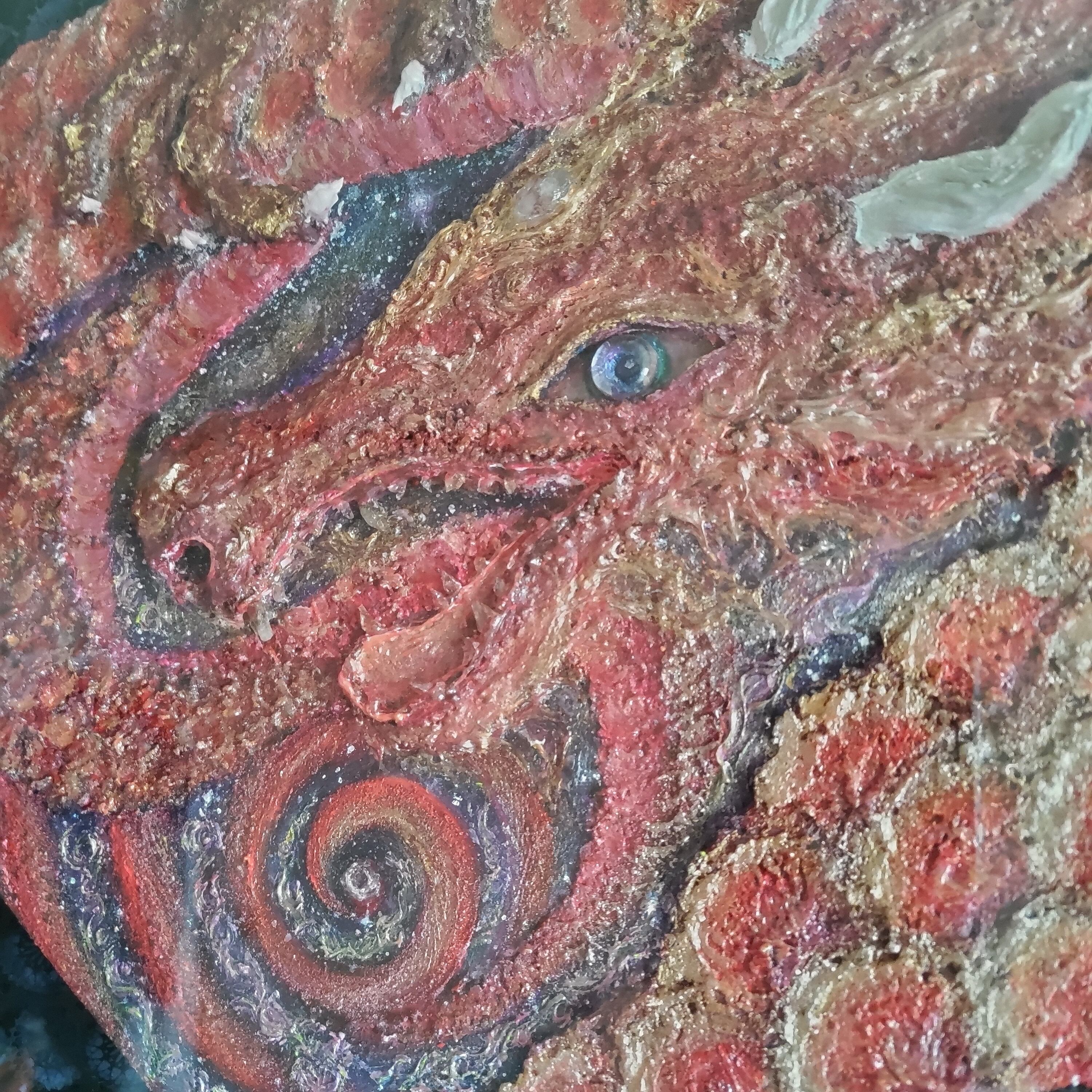 牙、瞳、第三の目に水晶をあしらった、迫力ある龍です。